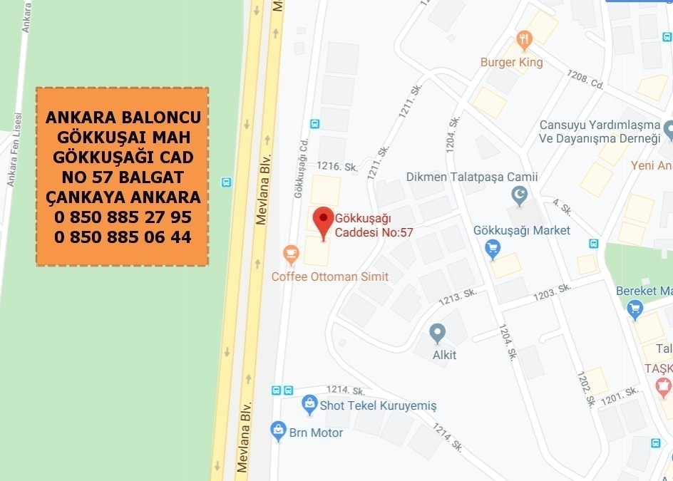 Adresimiz ;Gökkuşağı mahallesi gökkuşağı caddesi no 57-A balgat Çankaya Ankara Adres tarifi ; Balgat Ankara balon firmamıza ulaşmak için 0 544 929 08 35 numaramızı arayarak konum bilgisi isteyebilirsiniz. Firmamızda sis duman bombası , maç taraftar meşale satışı , konfeti satışı , sis duman , konfeti satışları için 0 850 885 27 95 numaramızı arayabilirsiniz. Yakınında : Adres tarifi için 0 850 885 27 95 ve 0 850 885 06 44 numaralarımızı arayarak adres konum bilgisi isteyebilir Ankara uçan baloncu firmamıza ulaşabilirsiniz